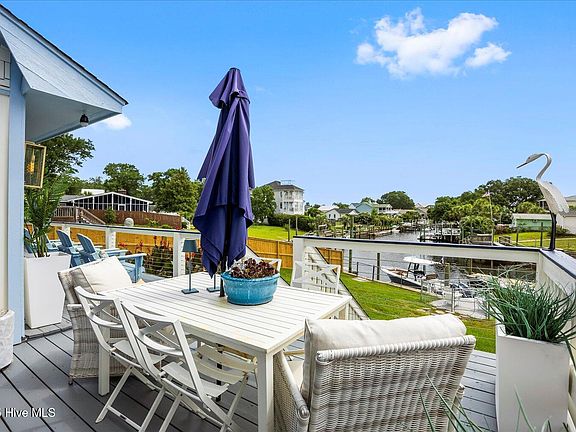 Beautifully updated canal-front home in Pleasure Cay with a 47' bulkhead, a brand-new 23' floating dock, and direct Intracoastal Waterway access! This Carolina Beach retreat is ideally located near the greenway, kayak and boat launch, Carolina Beach State Park, boardwalk, fishing piers, restaurants, and shopping. Extensive 2024-2025 renovations include a designer kitchen with brand-new appliances, dual kitchen sink faucets, expansive island, and tile-to-ceiling backsplash. Fully renovated bathrooms feature tiled walls/floors and a luxurious master shower with dual heads. Additional new upgrades include: garage door, HVAC & mini splits, tankless gas water heater, wood/carpet flooring, custom accent walls and trim, concealed master entry, finished office, fireplace mantels, interior/exterior paint, Lutron smart light switches, interior and exterior lighting fixtures, and GE Smart washer/dryer. The home is hard-wired for WAPS with a smart box. Exterior highlights include new fiber cement siding, new fenced backyard, cable deck railings, and a spacious 2-car garage. Other improvements include miscellaneous electrical, plumbing, framing, insulation, drywall, masonry, and landscaping. A pool may be added (with necessary approvals) in the side yard or near the back, as seen at the neighboring property. Schedule your appointment today!