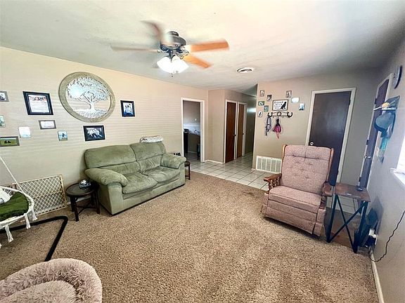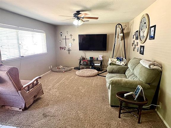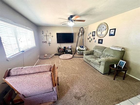 This is a perfect starter home or investment. Large spacious living room with oversized picture window offering tons of natural lighting. Kitchen / Dining room combo with tons of cabinet and counter space, ceramic tiled flooring, quartz countertops, tiled backsplash & black appliances. 3 oversized bedroom with deep closets and carpeted floors, Owners suite offers a 1/2 bath with single vanity. Hall full bath offers a oversized single vanity with quartz countertop, and tub/shower combo with ceramic tiled surround. Ceramic tiled floors in kitchen and bathrooms, carpet in living room and bedrooms. Single car deep garage with garage utility. Large back yard with chain link fence.