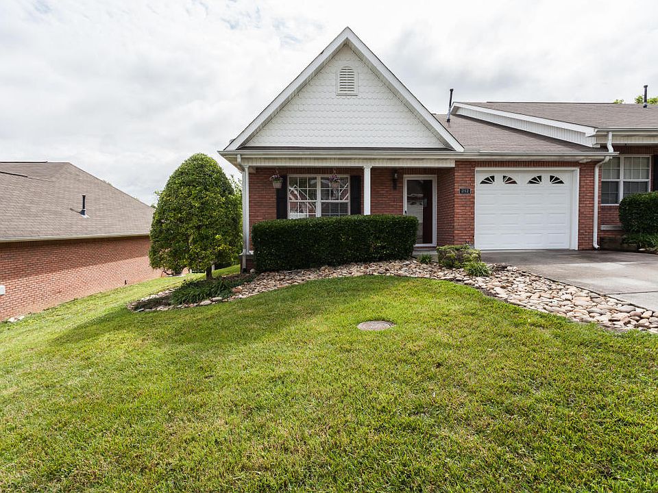 Rare opportunity to own in this quaint cozy neighborhood. This Maintenance free, all brick, one level 2BR 2BA home offers an open floor plan & split BR. Spacious eat-in kitchen opens to a spacious LR with dramatic trey ceiling, gas fireplace and Hardwood floors throughout foyer, living and dining areas. Large BRs, each with its own private bathroom. Private back patio area with park like setting by the creek. 1 car garage with storage. Convenient to the interstate, schools library, community center, and restaurants.