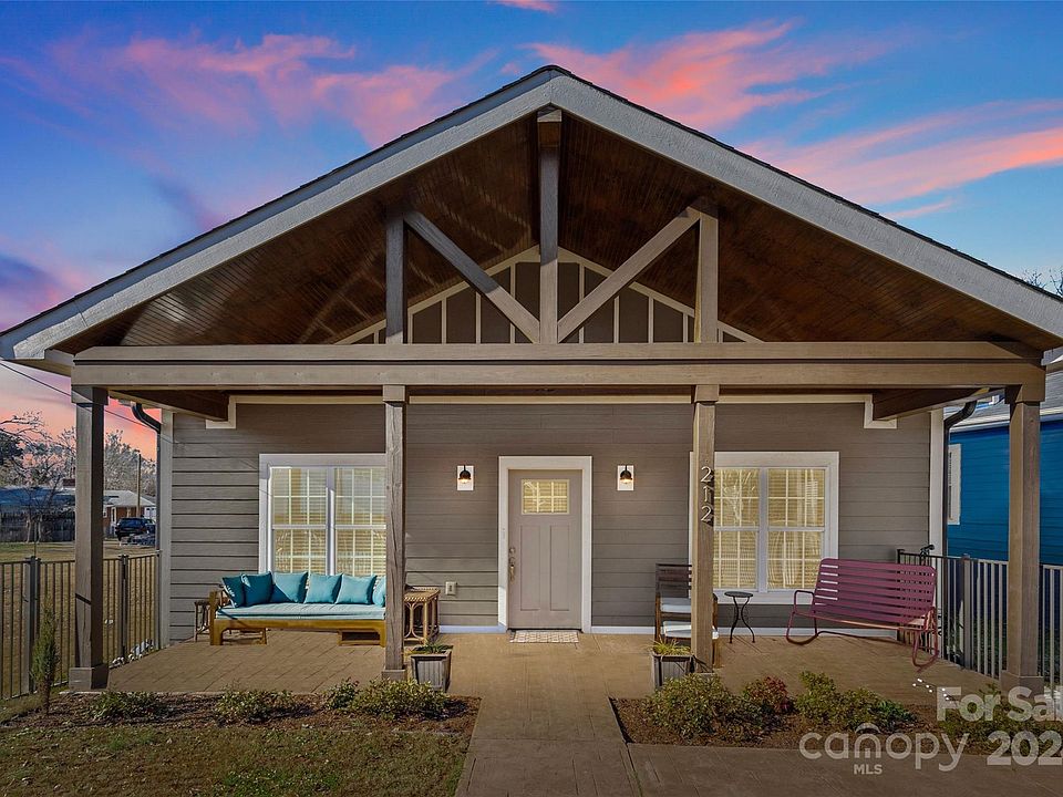 Nestled in a charming historic neighborhood (NO HOA) just 0.5 miles from downtown Concord, this beautifully renovated 3-bed, 2-bath bungalow blends timeless charm w/ modern upgrades. Stroll to nearby restaurants, cafes, & shops, just steps away. Fully renovated down to the studs in 2022, this home boasts numerous updates, including new windows, wood flooring throughout (no carpet), a vapor barrier, & a water heater (all 2022), along with a roof (2019) & HVAC system (2020). The open floor plan offers 9+ ft ceilings & crown molding for a spacious, elegant feel. The kitchen includes quartz countertops, modern cabinets, stainless steel appliances, & a peninsula island flowing into the dining area. The home offers 2 spacious spare bedrooms—1 w/ vaulted ceilings— & a luxurious primary suite w/ vaulted ceilings, a spa-inspired bathroom, All closets feature custom shelving. Outdoors, enjoy the deck & fenced backyard or relax on the fenced in front patio area w/ a vaulted wood ceiling.