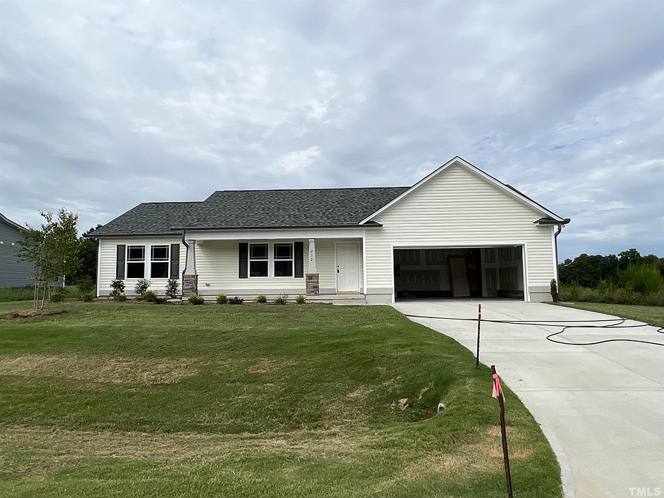 Beautiful ranch style home with rocking chair front porch is great for enjoying your morning coffee. Family room with cozy fireplace is open to the eat in kitchen that offers stainless steel appliances, granite and tile backsplash. Split bedroom plan. Owner's suite with dual vanity, sep shower, soaking tub and walk in closet. Two additional good sized bedrooms share a full bathroom. Patio in back is great for entertaining guests! 2 car garage!