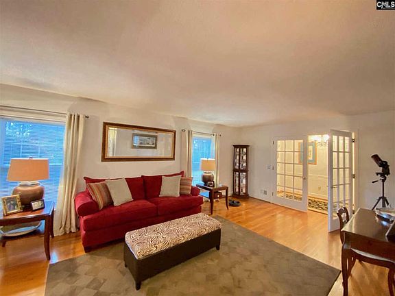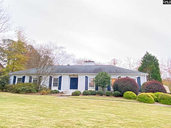 Showstopping, one level, all brick 3bd/2ba open floor plan in established Whitehall! Convenient to shopping, restaurants, and so much more! Eye-catching double door entrance leads into beautiful open floorpan with gleaming hardwoods throughout. Step through elegant French doors into formal living room open to updated kitchen! Large Kitchen with engineered hardwoods, crisp white cabinets, Silestone countertops, Silestone backsplash, and skylight providing natural light. Large island with built-in range and barstool seating. Breakfast nook off of kitchen perfect for enjoying a cup of coffee! Kitchen opens to stunning Formal Dining room with chair rail. Family room boasts warm brick fireplace with wetbar and quick access to backyard. Master bedroom with walk-in closet and spa-like Master bath fully updated! Master bath boast large double vanity, fully tiled spacious shower, separate water closet, and additional storage. Secondary bedrooms each with ceiling fans share hall bath with large double vanity! Spend your afternoons relaxing on your back patio with large backyard fully fenced in. Professionally landscaped and maintained! Well installed for sprinkler system! Zoned for Lexington 5 schools! Enjoy the walkability of established Whitehall!