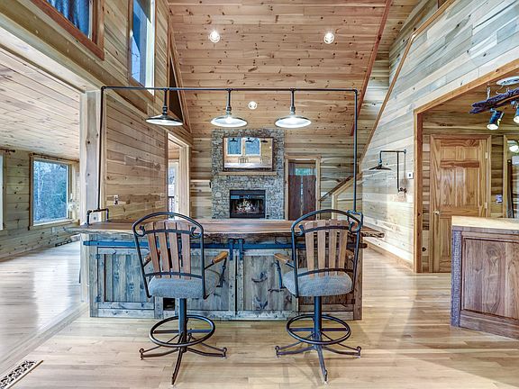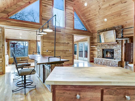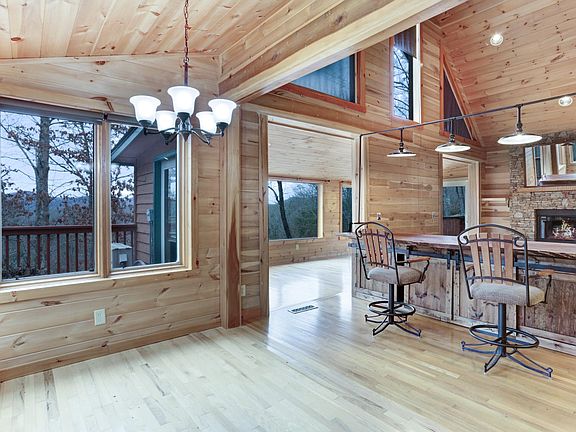 IT'S BETTER AT THE TOP! ABSOLUTE PRIVACY IN THIS MOUNTAIN TOP, END OF THE ROAD CABIN!! This three-bedroom/three bath cabin offers panoramic multi-ridge views, a whole house generator, Hardwood flooring, stacked stone floor to ceiling fireplace with gas starter, updated kitchen with custom made lighting fixtures, granite counters, black walnut cabinetry, gas range/oven, Fisher and Paykel two drawer top-of-the-line dishwasher, movable kitchen island, and black walnut room divider/eat-in area with lots of extra storage. PLUS the cabin is close to popular Historic Hayesville Square. There is a parking area for an RV that includes water and electric as well as a carport. Terrace level offers complete apartment with bedroom, living room, concrete patio, full bath, washer/dryer hook up, kitchenette and more!!