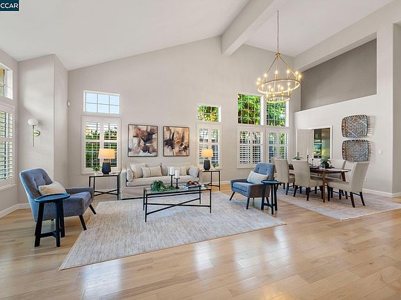 Resort style living with high-end luxury at every turn! With almost 3000 sf of well-appointed and welcoming living space, this contemporary beauty offers a winning combination of elegance and modern convenience. Form meets function in the extraordinary kitchen with Miele stainless-steel appliances and stunning cabinetry. Palatial ground floor primary bedroom with ample closet space & spa-like bath. The formal living and dining room are ideal forgathering and entertaining with soaring vaulted ceilings. The flexible floor plan includes 4 bright bedrooms and an expansive bonus room perfect for media, home office, or gym. Relax in the private backyard oasis which has been completely reimagined with spectacular pool and landscaping.Desirable location on a peaceful court backing pristine open space in Martinez’s prestigious Elderwood Glen Community. Highly rated Mt Diablo schools. Close to freeways, BART, hiking trails, parks, and the Best of the Bay Area