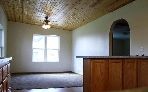 Cozy Dream home in move-in condition.Vinyl sided home with newer windows, two car garage and extra large lot. Updated bath and kitchen with oak cabinets, newer counter tops and eat-in area. Vaulted wood ceilings are insulated, all newer flooring.Gas FA Furnace;CA apx. 11 yrs. old, Newer electrical, NEWER rubber roof. Newer gutters; No entrance to crawl-8-10"; outside city limits.Sewer to mine. All meas rounded