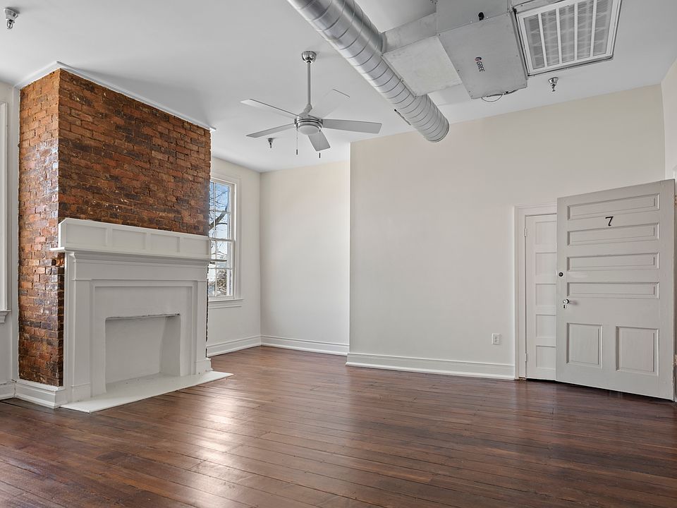 Lots of natural lightExposed brick fireplaceOriginal hardwood flooring