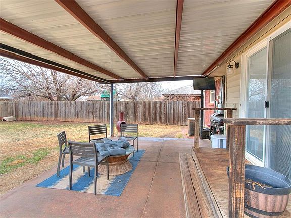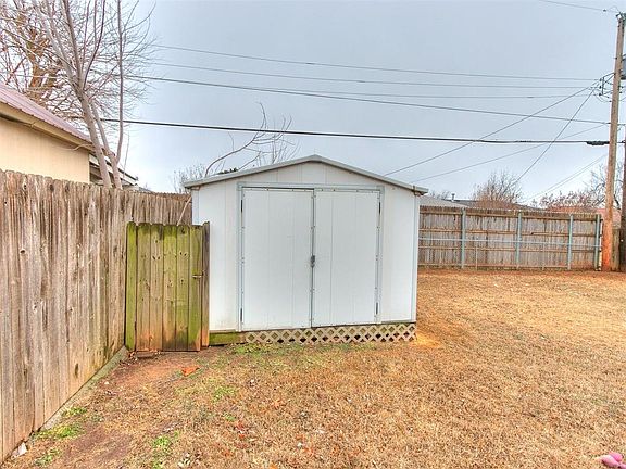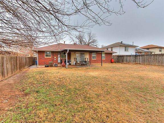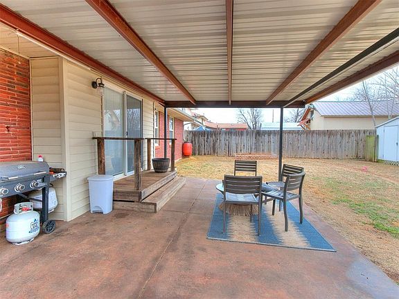 This incredible home is just minutes from Tinker AFB and I-40. It is conveniently located near restaurants, shopping, parks, and fantastic schools. Newly remodeled with new paint, baseboards, shelves, outlets, and flooring in the kitchen. Both bathrooms have been updated. Sellers exposed the original hardwood floors and refinished them to show their true beauty. The two carpeted bedrooms have the same hardwood underneath if you choose to expose them and refinish them later. All windows have been updated, and the home is well-insulated. Hall light fixtures, dishwasher, and microwave are also new. The seller has maintained this home and has recently applied fresh caulk and paint on some of the exterior. Enjoy the outdoors with the new covered back patio as well. Shed in the backyard, TV mounts, curtain rods, and some shelves stay with the home. The kitchen stove is electric, but a gas line is behind the stove if you choose to change to a gas range later. The front porch swing and living room mirror are reserved. Frig, washer & dryer are new and negotiable.