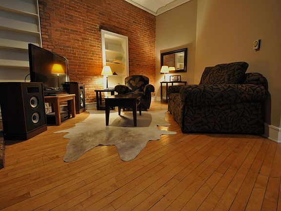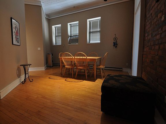Large two bedroom apartment located in an old converted schoolhouse. Exposed brick walls, hardwood floors, high tin ceilings, entry foyer, free off street parking, onsite laundry, across the street north of Champaign Public Library. Building has fiber optic cable access through iTV. Walking distance to downtown Champaign. Storage locker on site. Amenities: dishwasher, electric stove, refrigerator, security system, fiber optic cable access. For more information visit the Baker Collins Properties Facebook page. Owner pays for trash and sewer. Tenant responsible for electric and water.