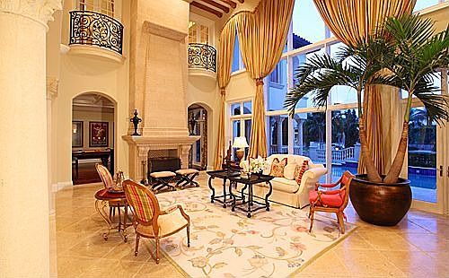 Emblematizing the lifestyle envisioned by legendary architect Addison Mizner, Boca Raton's prestigious signature address presents the setting for this Tuscan-inspired palazzo reigning over 144± feet of deepwater shoreline in Royal Palm Yacht & Country Club. Old World elegance, master craftsmanship, and luxury accoutrements coalesce brilliantly in this impressive estate completed in 2004, created by JMB Development Group, LLC in concert with innovative architect Franky & Associates and builder Bayshore of South Florida, Inc. <br /><br />Stunning living spaces expressly designed for grand-scale entertaining are set off by exquisite ornamentation adding rich warmth to the stately scope of the six-bedroom residence encompassing a total of 14,223± square feet. Complementing the regal realm of the interior is an extravagant outdoor entertainment area sweeping across the south-facing waterfront, spanned by a full-length yacht dock, for resort-style living in the grand South Florida tradition. <br /><br />Location <br /><br />Key Palm Road, Boca Raton, Florida. Royal Palm Yacht & Country Club has enjoyed acclaimed for more than half a century as Boca Raton's most prestigious residential community. Offering round-the-clock guard-gated seclusion in a premier location, Royal Palm is situated just across from the landmark Boca Raton Resort & Club and the beach. The world-class shops and restaurants of Mizner Park are just minutes away, while Boca Raton's private executive airport is within a short drive. <br /><br />Property <br /><br />Exquisitely appointed down to the minutest detail, this Tuscan-inspired masterpiece presides over one-and-a-half deepwater lots commanding 144± feet of tranquil deepwater frontage. Double staircases descend to the extensive concrete yacht dockage spanning the entire shoreline, complete with lighted concrete stanchions and water/electrical service. Centered on a spectacular salt-water pool with adjacent spa, the immense waterfront entertainment area unfolds with multiple loggias featuring cypress ceilings, Bianca marble floors, a fireplace, and a summer kitchen for alfresco dining. Classic balustrades and double fountains embellish the glorious setting on privately walled grounds with upgraded professional landscaping by Land Design and automatic night lighting. The Boston Brick paver circular drive has Xenon electronic gates at both entries. <br /><br />Residence <br /><br />Superb workmanship and advanced engineering combine in this stately residence totaling 14,223± square feet with 6 bedrooms, 8 full and 2 half baths, handicap-accessible mahogany paneled hydraulic elevator, laundry rooms on both levels, 4 1/2 -bay garage, and numerous new upgrades. The roof is of hand-made Honduras Alhambra barrel tile and has copper gutters, and there are Hurd impact-glass windows and exterior doors throughout. All floors are finished in marble, Jerusalem stone, and hardwood below the intricately detailed ceilings with custom plaster crown moldings. Raised-panel doors are 9½ feet on the main level and 8 feet upstairs. All bedrooms have plantation shutters. Myriad appurtenances include the 8-unit Trane air conditioning totaling 31 tons with electrostatic and ultraviolet air cleaners, Icynene attic insulation, comprehensive Crestron electronics, web-enabled Elan security system, safe, 245-KVA whole-house gas generator, 2 Waterman water purification systems, PBX phone system incorporating satellite and cable television plus Direct TV, and Sirius satellite radio. <br /><br />First Floor: At the monumental entry, Honduras mahogany double doors welcome guests into the stunning foyer with ornate double-height ceiling, Jerusalem stone floor inlaid with Italian Bianca marble, and majestically sweeping staircase framed by intricate ironwork balustrades replicated from the Ritz-Carlton Hotel in Paris. The formal powder room is adjacent. Through a groin-vaulted gallery, the gran