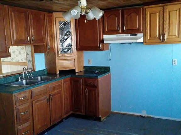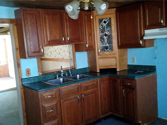Fixer-upper with great potential offered as Land Contract deal. Kitchen is great, new replacement windows, awesome sunroom with lots of windows, 2 wood decks, nice corner lot, big garage plus 2 mini barns for storage. House needs work but outstanding investment opportunity. Corp Owned & Sold in As-Is condition.