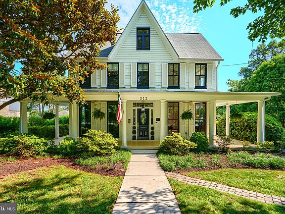 ***Major Price Improvement of $25K****Welcome Home to this 1876 Victorian located in the heart of Lutherville Maryland. This home seamlessly blends timeless elegance with modern sophistication. You will be greeted by the stunning wrap around front porch where you can sit and enjoy your morning coffee or wind down in the evenings with a cocktail. Upon entering, you are greeted by a large and elegant foyer that boasts crystal chandeliers and an original oak staircase that sets a grand tone for the entire home. You will immediately notice the sun drenched rooms with floor to ceiling windows flanked by two bays. The elegant four corner floor plan with three original marble fireplace features, allows you to cozy up on cold winter days with the living room pellet stove. The well appointed custom kitchen built by Pennsylvania craftsman has been updated with high end stone countertops and KitchenAid appliances. The show stopper of the first floor is the 450 sf great room that was constructed in 2022. With vaulted woodwork ceilings, hardwood floors and a plethora of windows that provide views of the English gardens, brick patios and large flat rear yard. A secondary screened porch off the kitchen pantry is the perfect setting for family dinners. Multiple exterior porch doors lead to the powder room - perfect for entertaining- as well as the first floor library. Whether you climb the grand oak staircase or the original butler stairs, you will be amazed by the spacious second floor foyer with original heart pine floors and elegant Victorian wall paper. The spacious primary bedroom with a recently renovated ensuite bathroom with a stone and tile shower. You will fall in love with the converted antique hand carved credenza with dual sinks. Three remaining spacious bedrooms, one of which has an adjoining nursery door, all have fresh paint and carpet. The open air second floor porch that overlooks the rear yard is a great place to sit, read and enjoy the afternoon breeze. What was once the only bathroom on the second floor has been converted to a spacious laundry room with build in cabinetry and antique pedestal sink. The hidden wooden stairs lead to a quaint office and a massive attic space with vaulted ceilings, which is perfect for an additional 5th bedroom, family game room, and has ample storage closets. An overlooked feature of the home are the abundance of glass transom windows which casts sunlight to all parts of the interior of the home. This elegant beauty turns 150 years old next year. The best birthday present you can give is to be the next stewards of this magnificent home. With a recent price adjustment of $25K, this home is a great find and well under market value for recent contracts and sales in Historic Lutherville.