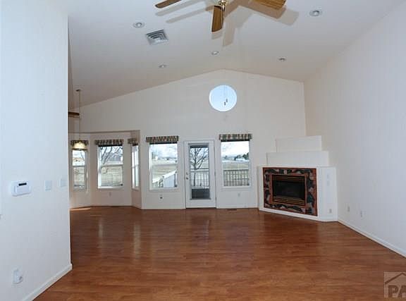 The owner has done everything right to make this home ready to move into. It has new carpeting that has never been lived on. The laminate flooring looks new. It is in a nice, quiet neighborhood of well-kept homes. It has a great view of Greenhorn Mountain, and even has views of Pikes Peak from the front and the Spanish Peaks from the back.
