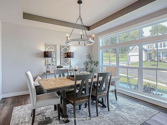 This craftsman style, 2-story home features 9’ ceilings in the basement and on the first floor, a 2-car, garage with an additional storage area, and a mudroom entry complete with a powder room and built-in lockers. Stylish vinyl plank flooring flows throughout the main living areas. The foyer is flanked by a formal dining room accented by a tray ceiling and a versatile, carpeted flex room. A butler’s pantry connects the kitchen and dining room along with a spacious pantry. The kitchen is well-appointed with stainless steel appliances, quartz countertops with a tile backsplash, and a large center island. Adjacent to the kitchen is a breakfast area with access to the rear patio. The cozy family room is warmed by a gas fireplace with a stone surround. On the second floor, the owner’s suite boasts two expansive closets and a private bathroom with a double bowl vanity, tile shower and built-in bench. Three additional bedrooms, a full bathroom, a rec room, and laundry room complete the second floor. (The floor plan shown represents the standard layout for this home plan. Actual layout, features, and options may vary. Construction plans take precedence over artwork. Please see the Community Sales Manager for details.)
