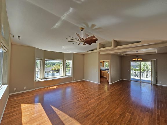 Curb appeal, breathtaking views and an open concept floor plan all offered in this 3 bed, 2 bath home nestled on .37 acres. Living room boasts large bay windows, vaulted ceiling, plant shelves and an abundance of natural lighting. Formal dining room with tray ceiling & access to large wrap around deck. Kitchen features stainless appliances, breakfast nook with bay windows, deck access and a double oven gas range. 3rd bedroom has glass french doors and can be used as an office. The master bedroom has a private covered patio, jetted corner tub, step in shower and a large walk-in closet. Large 2 car garage and entry to the oversized utility/laundry room with cabinetry, gas/electric hookups & sink. Add'll features incl. hardwood floors, solar tubes & 9' ceilings. This property is fully fenced, sprinklers front/rear, landscaped and a variety of fruit trees. RV parking to accommodate an RV up to 45' long with 30 amp service. All information deemed reliable but not guaranteed.