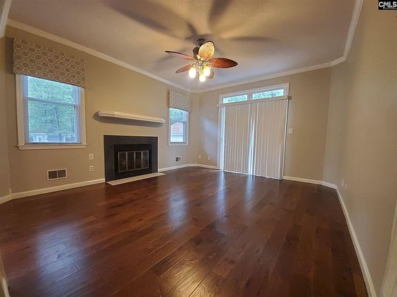 Another $10K reduction.. Less than 10 minutes to Lexington Medical Center is this amazing 3/2.5 with 2 bedrooms on the first floor. 3rd large bedroom and bonus room on the 2nd floor along w 1/2 bath. Galley kitchen and formal dining room with bay window opens to a large great room with fireplace which opens up to a expansive deck overlooking a large wooded fenced backyard. Most of the downstairs has laminate hardwood flooring and molding in living spaces. Ready to move-in. Neighborhood pool and club house are included in minimal HOA fees. Just off of Leaphart Road and Mineral Springs, you have quick access to I-20 or I-26.