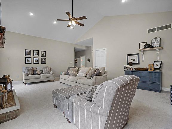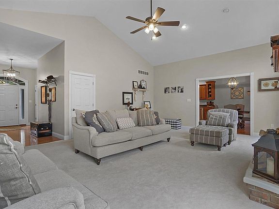 Stunning home in sought-out subdivision! This brick front ranch home is close to the library, park, pool, shopping & school! An expansive entry foyer with wood floors opens into the vaulted living room with beautiful masonry fireplace flanked by windows. The kitchen features solid wood cabinetry, stainless appliances & gorgeous wood floors that flow into the breakfast room. French doors lead from the breakfast room onto the maintenance free deck overlooking the backyard. The massive owner's suite features a tray ceiling, large walk-in closet & private bathroom with tub & separate shower. Two additional bedrooms share a second bath on the main floor. The main floor laundry pulls double duty with hanging space for coats when entering through the attached 2-car garage. A third garage space is in the lower level – great for lawn equipment or additional vehicles. The large rec room walks out onto a patio. A half bath & two unfinished storage rooms are also on this level.