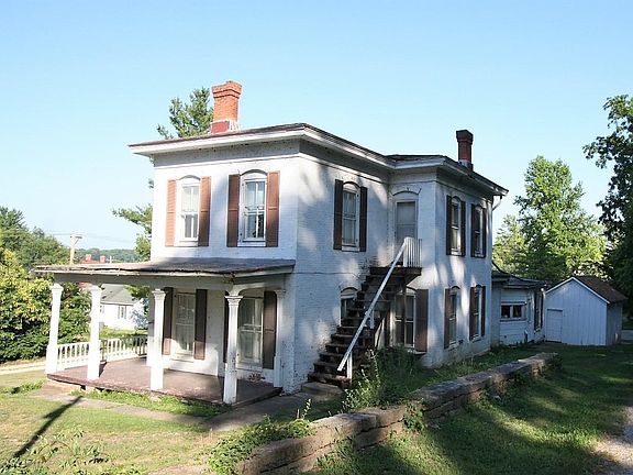 Historic Home located in downtown Clarksville on the Mississippi River. This unique 1.5 STY was built in 1850 & sits on a double lot... high on a hill & a block from Highway 79. This property has a formal living room & a formal dining room + 2 bedrooms & a full bath on the first floor. The eat-in kitchen w/built in cabinets needs some renovation. The main floor laundry is a pleasant surprise w/a full wall of built-in pantry/cabinet doors. The second floor has 2 large bedrooms & another full bath + a small room that was previously used as a kitchen. This could be a great single-family home OR used as a 2-family OR restored to a possible Bed & Breakfast.