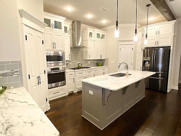 New listing near Cabot, custom home with exceptional amenities, available immediately. Location: private cul-de-sac and on the lake in Shadow Creek Subdivision with easy access to Hwy 67/167. Premium hardwood floors, elaborate granite, fixtures, flooring, trim & beams. Open-plan living with gas fireplace. Luxury kitchen with custom cabinets, two pantries, and gas top stove. Large master bedroom with fireplace. Master bathroom includes walk-in shower with rain head, his/her vanities and heated tile floors. Tankless hot water heater, foam insulation, floored storage attic, 7x11 safe/tornado room accessible from garage. Extended length two car garage with custom driveway for additional parking. Maintenance free exterior and fenced yard. Covered back porch (380 square feet) overlooking sunset on lake.