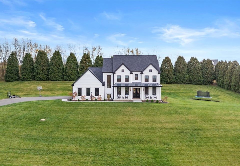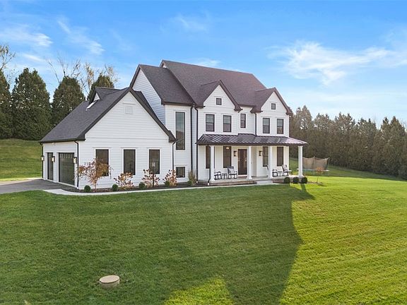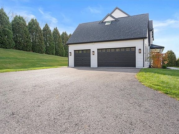 This custom-built Kaclik home is a true masterpiece, set on a private, tree-lined 2-acre lot. It boasts unique design features, including soaring 10-foot and 13-foot ceilings and stunning Anderson pecan hardwood floors throughout the main and upper levels. The chef’s kitchen is a dream, featuring custom cabinetry, a 10’ x 5’3” super white leathered quartzite island, a picket tile backsplash, Monogram appliances, and a hidden pantry. Enjoy outdoor living with a concrete patio off the breakfast nook. Spacious 3-car garage provides ample storage and room for vehicles. Upper level offers 4 spacious bedrooms, including a luxurious master suite with spa-like bath, a mini-master with its own ensuite, and two additional bedrooms sharing a Jack & Jill bath. Finished lower level with a gas fireplace and wet bar with granite countertops. This home is packed with thoughtful upgrades, energy-efficient features and designed for modern living. Perfect blend of style, function, and comfort.