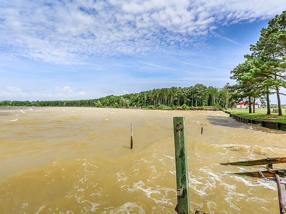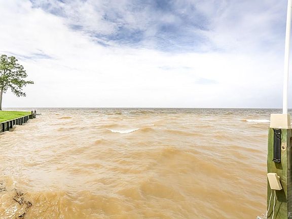Absolutely BEAUTIFUL 3 bed/2 bath home on FANTASTIC LOT!! Make the dream of owning a stunning 2.5 acre waterfront home w/water views from every room a reality. Spacious kitchen with breathtaking wood ceiling that leads to dining room & HUGE sunroom. Includes shed & HUGE 4 car detached garage!! WHOLE HOUSE GENERATOR. House has never flooded/doesn't require flood insurance. Enjoy gorgeous sunsets from deck w/hot tub or on swing overlooking the water. The possibilities are endless. Home furnishings & contents of detached garage are negotiable. Currently being Airbnb'ed, avg $35K/yr