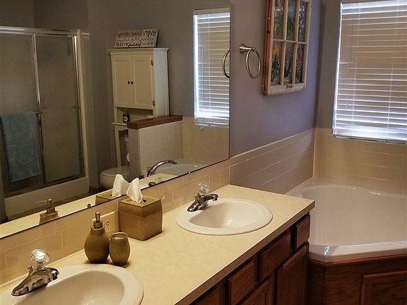 Very well maintained home that it is better than new. Covered front porch w/ railings. Open floor plan with vaulted ceilings in large living room, dining area w/ bay window and cute kitchen, Master bedroom is complete with walk-in closet and large master bathroom w/ double vanity and separate garden tub/shower. Laundry room is on the main floor. Basement has been recently finished with huge family/rec room, full bath, and 2 additional bedrooms. Home sits on a cul-de-sac lot with sprinkler system and fenced backyard. Extra entertaining patio space was recently added. Set your appointment today.