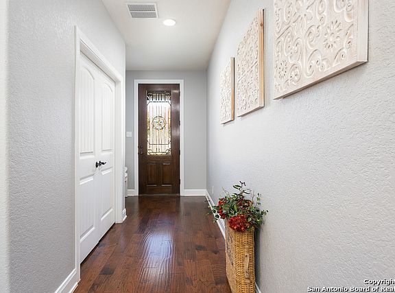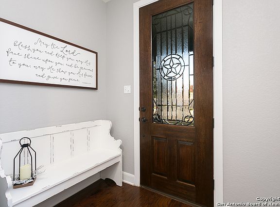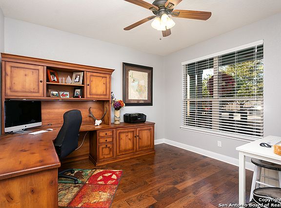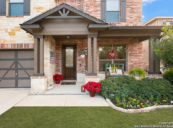 Beautiful, Highly-upgraded 4 bdrm, 2.5 bath home that backs to a green belt and Cibolo Nature Center! Open floor plan with beautiful hardwood and tile floors , 9' ceilings, fireplace, office and game room. Stunning kitchen featuring granite countertops, 42" cabinets, walk in pantry, gas range, ss appliances and breakfast bar, perfect for entertaining. Oversized master bedroom w/ double vanities, shower and garden tub, large walk-in closet. Stone/Brick exterior w/ gutters, 3 car garage, extended patio.