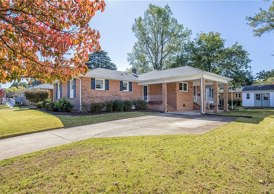 Spacious all brick ranch in Sherwood Hills Subdivision. Well maintained with 3 bedrooms, 2 full bathrooms, living room, formal dining room, kitchen, family room, laundry room, and sunroom. Hardwood floors under the carpet. An attached covered carport, side porch, rear fenced in backyard, and a storage shed.