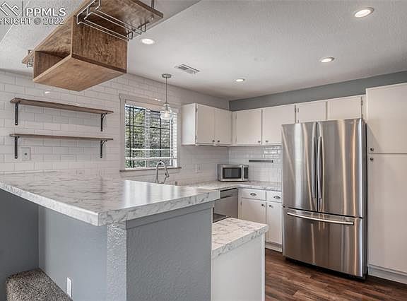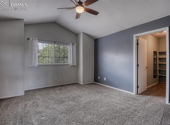 Super Cute Upper Level Condo with Views of Ute Valley Park Rock Formations! Open floor plan and vaulted ceilings in the great room/dining room and primary bedroom. Great room features gas fireplace, walk-out to the upper deck, and a wall of windows filling the space with natural light. Kitchen features stainless steel appliances and pretty white subway tile backsplash. Master bedroom with large walk-in closet and nearby updated bath with granite counter and tile tub surround. Second bedroom with en suite full bath and large closet. In-unit laundry with washer/dryer included. Back staircase to attached garage with workbench. Community features a clubhouse with exercise room, community room, and pool/hot tub. Great Mountain Shadows location near hiking, biking, dining, and shopping.