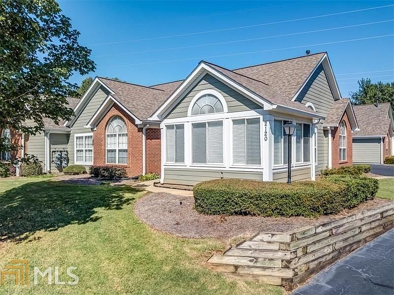 Welcome Home to a move-in ready 3 bedroom, 2 bath "step less" ranch condo located in the fabulous Crossings of East Cobb! This updated end unit features a tiled sun room with thermal pane windows and separate heat & A/C unit, Granite counters in the tile floored Kitchen with a subway tile back splash, hardwoods with a gas fireplace in the vaulted Great room, a big master suite and over-sized 2 car garage. As a bonus, the refrigerator, washer and dryer stay. Perfect location in the 41 unit complex across from the central Clubhouse, Swimming pool and Mailboxes.