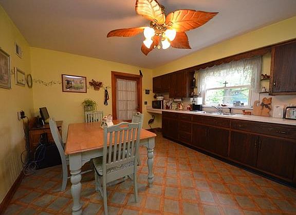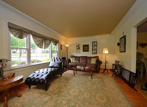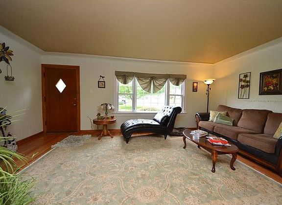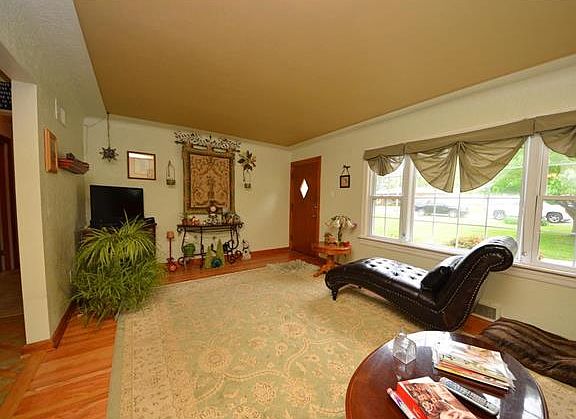 CURB APPEAL! This adorable two bedroom bungalow has hardwood flooring, a cozy living room that opens to the eat in kitchen. All appliances will be staying! A full bath is shared with the two nice sized bedrooms. Enjoy the extra larged yard from the covered patio. The one car garage offers plenty of storage. Roof new in 2012. Move in ready!