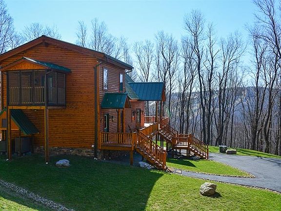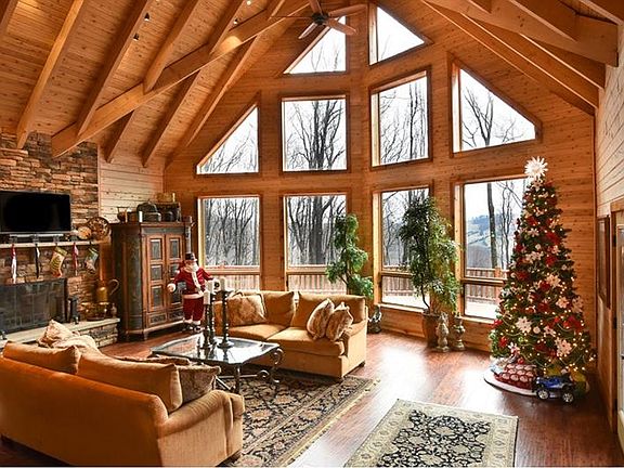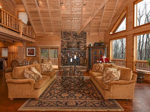 Private, pristine and perfect! This unique 3,200 square foot custom cedar home is one of Mountain Creations' finest Diamond Lake designs. The majestic home sits atop a six acre estate with a private paved drive accented by stone columns and electric gate, just two miles from Seven Springs Mountain Resort. With a fantastic view of the mountain's North Face, this home spares no expense and offers the perfect blend of seclusion and proximity to the excitement of the resort. Inside this four bedroom, three bath home, you will discover a multitude of luxurious features. Gorgeous hardwood flooring is just the beginning. The baths feature Franciscan slate with large glass shower doors. The kitchen features a 12-foot granite island, all stainless steel GE Profile appliances including dual ovens, range, refrigerator, microwave and wine cooler, and custom solid wood cabinets. The home offers a gorgeous outdoor setting with a wrap deck and both an indoor and out door fireplace.