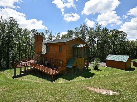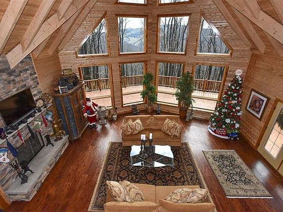 Private, pristine and perfect! This unique 3,200 square foot custom cedar home is one of Mountain Creations' finest Diamond Lake designs. The majestic home sits atop a six acre estate with a private paved drive accented by stone columns and electric gate, just two miles from Seven Springs Mountain Resort. With a fantastic view of the mountain's North Face, this home spares no expense and offers the perfect blend of seclusion and proximity to the excitement of the resort. Inside this four bedroom, three bath home, you will discover a multitude of luxurious features. Gorgeous hardwood flooring is just the beginning. The baths feature Franciscan slate with large glass shower doors. The kitchen features a 12-foot granite island, all stainless steel GE Profile appliances including dual ovens, range, refrigerator, microwave and wine cooler, and custom solid wood cabinets. The home offers a gorgeous outdoor setting with a wrap deck and both an indoor and out door fireplace.