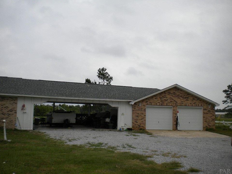 Large home on over 11 acres of property. House has a kitchen and dinning combo with lots of cabinets. Master bathroom has a double vanity. There is a 2 car carport, 2 car garage and a 2 car detached garage. Great for development! Zoned Commercial, FLU-MU-S, Flood Zones A & X, NAS-Pensacola AIPD-2.