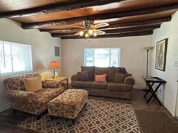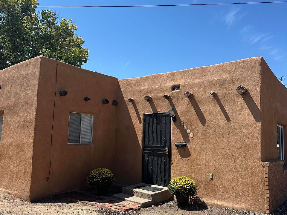 Discover timeless charm in this authentic adobe casita, just steps from Old Town Plaza. This lovely gem blends classic Southwest style with modern comfort. Highlights include a bright living room with viga ceiling, inviting kitchen and dining area, washer/dryer hookups, private driveway, and a spacious fenced yard perfect for pets or gardening. Nestled on a corner lot in a vibrant, walkable neighborhood, you'll enjoy easy access to cafes, galleries, museums, cultural landmarks, and the BioPark. This rare opportunity is ideal for an owner-occupant who values history, character, and the vibrant spirit of Old Town Albuquerque. Truly, the perfect place to hang your heart.