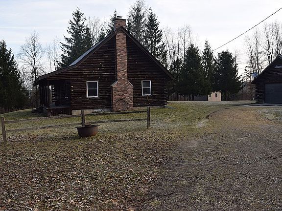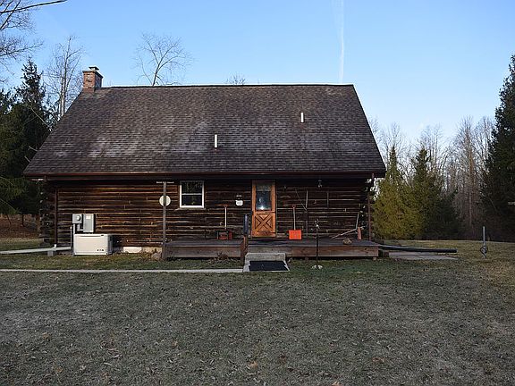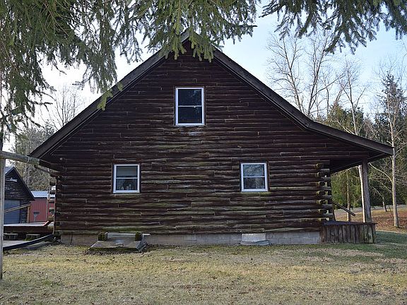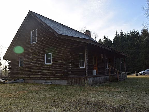 Beautiful craftsman-built log A frame. Large porch on front + rear View of stream from living room Deer + wild turkeys' daily visitors Back up propane generator + large functioning wood burner assure ability to ride out any storm. All things considered, this is an opportunity if someone totally wanted to be off the grid
