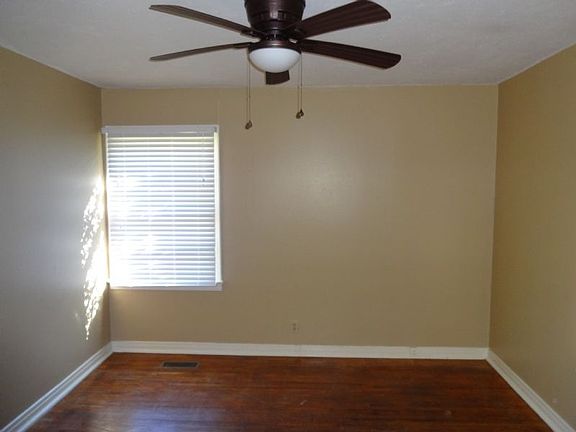Available mid-June, this cute little duplex has the living room and kitchen downstairs and the bedroom and bath upstairs. The kitchen has ceramic tile floors and comes equipped with a gas range and refrigerator. There are hardwood floors, ceiling fans and window coverings. A stack washer and dryer is provided for tenant's use. The yard is partially fenced. Tenant is responsible for payment of water, electric and gas. One small pet may be allowed. This is a non-smoking unit.