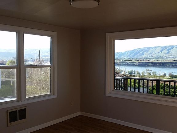 Views galore from all levels. 2120 E 10th, The Dalles. Main level has living-room, dining-room, new kitchen, (washer/dryer hook ups in kitchen closet), full bath, bedroom that leads onto deck. 2nd floor: 3 bedrooms with 1 full bath off master. Balcony with views. Small fenced yard, sprinklers, shed. Parking behind the home off shared alley. Covered carport. Small pet upon approval, additional pet deposit. No smoking, year lease. Tenant responsible for yard care, pays: water, sewer, garbage, electric, cable, TV, internet
