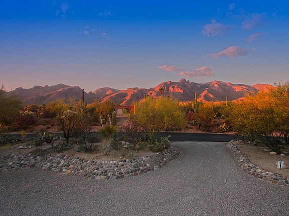 Beautiful Custom Home with fabulous Catalina Mountain and City Views all on 1.74 acres. Only one owner. Fresh neutral colors throughout. Split floor plan with open kitchen and granite counters and lots of cabinetry. High beamed ceiling in living room showcases the elegance of this home. Great room has built-in entertainment center and cozy beehive fireplace. Spacious master suite with lots of closet space, large master bathroom with garden tub and double sinks. Enjoy city views under the large deep outdoor patio by the sparkling pool. This is a very private lot with dramatic Catalina Mountain views. Lots of storage, 3 car garage. This amazing location is close to La Encantada, schools, restaurants & hiking paths. Estate sale.