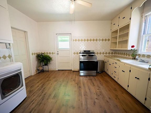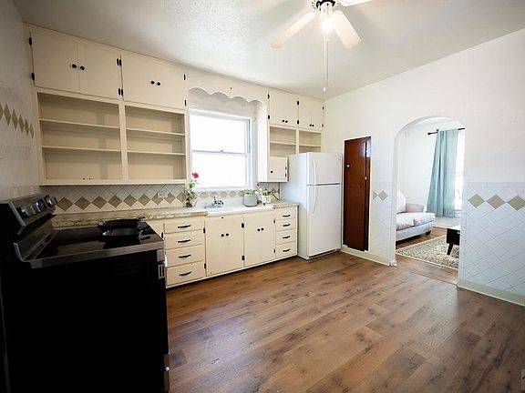 Cute two bedroom, one bath home with 1 car detached garage AND a 1 car oversized attached carport. Tall ceilings and windows (with natural light pouring in) lend to the spacious feeling experienced upon entering the home. The flooring consists of hardwood and luxury vinyl plank. Floor to ceiling cupboards in the kitchen on the south wall. Open layout leaves room for dining area within the kitchen or space to add an island. Primary bedroom boasts built-in storage solutions and window evaporative cooler. Full bath with tiled shower surround is another plus you don't often find at this price point. The outdoor space showcases both front and rear covered porches. Roof is only a few years old which helps with insurance affordability. Fully fenced yard is secure for pets, plus there is a raised garden box. Owner kept excellent records and has home inspection, engineers report and radon report. Home is within close proximity to downtown, Pueblo Riverwalk, dining, shopping, grocery stores, golfing and the reservoir. If you commute, it has extremely convenient I-25 access. This is a home you won't want to miss. Schedule your showing today!