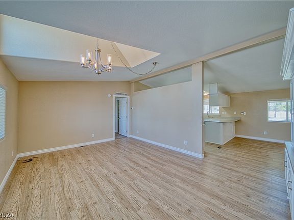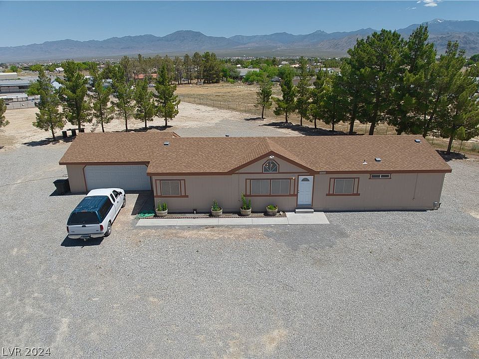 Beautifully remodeled home in the desirable South East Pahrump Valley, featuring meticulous updates throughout. This charming property boasts a new roof, HVAC system, water heater, water softener, and fresh interior and exterior paint. Enjoy the elegance of luxury vinyl plank flooring, complemented by cozy carpeted bedrooms. The kitchen is a chef's delight, equipped with brand-new shaker-style cabinets, quartz countertops, a farmhouse sink, and modern appliances including a new dishwasher, stove, and disposal. Walk-in pantry provides ample storage. Both bathrooms have been elegantly upgraded with new vanities, sinks, mirrors, lighting fixtures, and bath/shower enclosures. 2 car finished garage, 575 sqft, new door & opener, with evap cooler. A spacious 600 sq ft covered patio offers a shady retreat to take in the stunning greenbelt and mountain views. The 1.3-acre parcel is fully fenced and adorned with mature pine trees. This pristine property is a must-see, inside and out!