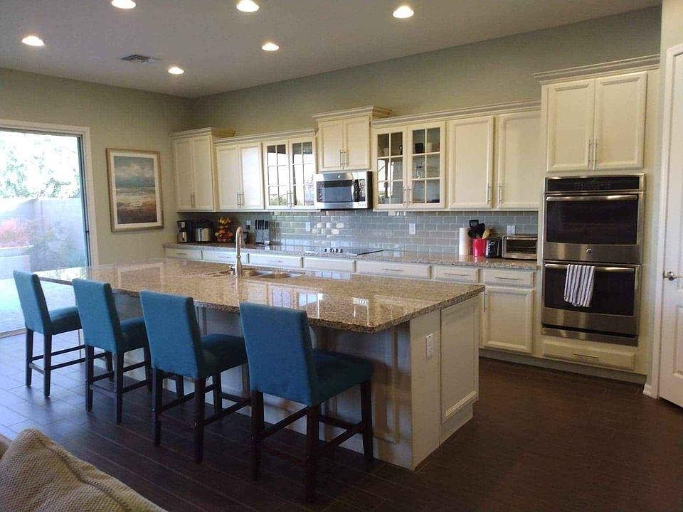 **Rent to Buy Applicants Welcome Incredible opportunity to live in a stunning and meticulously maintained serene lot location in coveted La Valenciana gated community. This home is warm, bright, clean, and inviting. The gourmet kitchen and great room space is enormous with a 14' long kitchen island, 10' ceilings. The house includes a large home office/flex room with dual French doors, a beautiful backyard, gas fire pit, and high end finishes throughout! New carpet to be included throughout the home as well for new tenants. Landlord also covers the solar mortgage which saves over half the electricity cost! 3 of the 4 bedrooms have en suite (in room) full sized bathrooms with recently updated decorative walls and paint. La Valenciana is situated in a very safe gated community in a prime East Valley location, 1 mile north of the 202 freeway, and within 3 miles of both Chandler and Gilbert downtowns. If you enjoy scenic bike riding and daily running, the popular 25 mile long Paseo Canal Trail is right across the street of the subdivision. Owner pays for HOA dues, streamable Sling TV, landscaping, and solar mortgage (saves $200+ per month during summer. Bills average $50 during winter). Tenant covers electricity in excess of solar generation, gas, water, sewer, trash, and internet