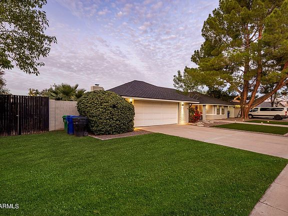 Move-In Ready, Stunning 5 Bedroom property is the home you'll want to see! Rare opportunity w/ NO HOA in addition to RV Gate, Sparkling Pool, Oversized Lot on Cul-De-Sac street with coveted North/South Exposure..And there's more! This energy efficient home offers massive curb appeal, manicured landscape w/lush grass areas, pavers, and a 2 car garage. Enjoy the energy efficient benefits with owned solar (huge savings during those summer months), electric car charging station and Tesla power wall battery backup. Inside you are met with an open floor plan, designer shiplap finishes, spacious dining & living area w/elegant wood-look tile flooring, plantation shutters, and neutral palette throughout. The gorgeous modern kitchen is equipped w/ample cabinetry, solid-surface counters, stylish backsplash, stainless steel appliances including wine fridge and a charming island. Don't forget about the cozy family room featuring modern fireplace and elegant French doors that open to the expansive backyard. Enjoy the sparkling blue pool on hot summer days and oversized yard to meet all the family needs. Fun Fact, Home is 1% of Phoenix homeowners that have access to Flood Irrigation rights. THIS HOME HAS IT ALL!
