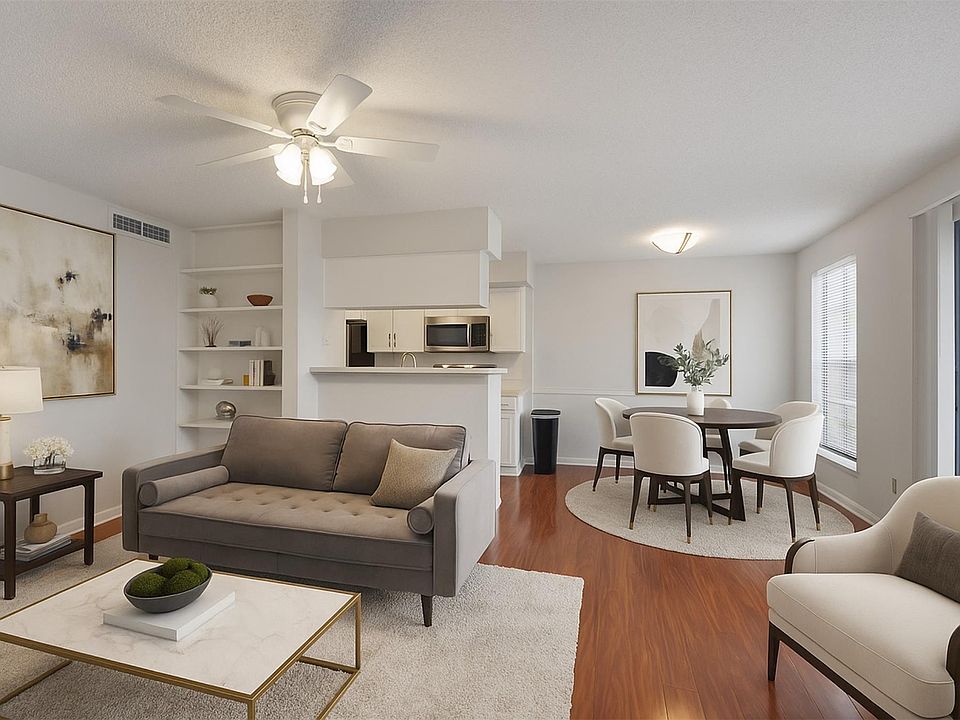 Private patio with storageTennis courtsWood-look flooringIn-unit laundryWalk-in closetGround-floor condoCovered parking