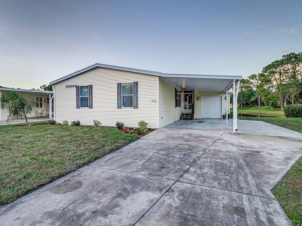 This 2003 Palm Harbor Homes has 2 bedrooms and 2 bathroom with a total living space of 1344 square feet. The home is freshly renovated and has lots of new upgrades. In the living room the tower dormer features a tray ceiling and horizon windows to make the open living space bright and airy. There is laminate flooring through out the home, fresh stainless steel appliances in the kitchen along with all new backsplash, Corian counter tops in kitchen and bath rooms along with new faucets. The lanai has tile flooring and is window ready and is where you will have many cups of jo and a lot of dinners enjoying the beautiful fountain that is in the lake. The home is being offered unfurnished with a golf cart included. The home is beautiful and ready for its new owner. Come see Team Cypress to make this home and our resort lifestyle living your reality. Don't wait this home will not last for long. Please contact the Sales & Information Center for more information and showing requests.