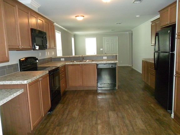 The charming front porch of this brand new home invites you into a lifestyle of resort living. The spacious kitchen features beautifully designed cabinets, gorgeous countertops, and energy efficient appliances which help you save year after year. In addition to the designated dining area, enjoy entertaining friends and family at the 42 high breakfast bar which backs up to the well designed great room and features beautiful flooring. The master bedroom is your own private getaway boasting a huge walk-in closet, dual sinks and a convenient easy in, easy out standup shower. The additional two bedrooms are large and have plenty of closet space and plush carpet. This home features washer and dryer hookups, and an exterior shed for additional storage. The thermal pane windows and vinyl siding also keep down heating and cooling costs and help you enjoy maintenance free living allowing you to unwind on your back patio or deck addition to this worry free home. We understand that you deserve to relax, so call us today and let schedule a tour of your new oasis. 6 Months free rent on the purchase of a new home that closes before June 25th 2016!!