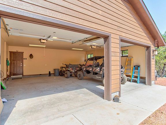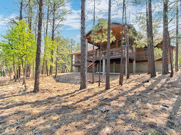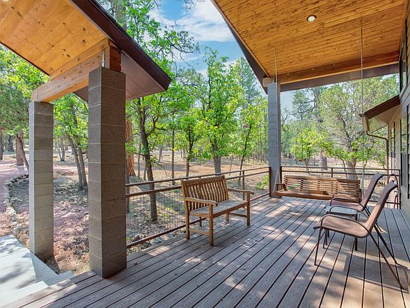 This one year old beauty located right on the national forest boundary in a secluded part of Clear Creek Pines is the home of the major Happy Jack area builder and no expense was spared in it's construction. This charming abode has all the comforts of home yet is located in a tranquil get-a-way-from-it-all forest setting surrounded by mature ponderosa pines. Imagine enjoying the huge covered front and rear deck taking in the aroma of the pine forest while viewing elk and deer strolling thru the property going to and from the adjacent national forest. The home itself is a single level split floor plan, 2300 sf. 3 bedrooms and 2.5 bathrooms. Stunning great room offers panoramic cathedral ceilings featuring aspen T&G and faux beams. The kitchen features big chill classic series appliances,