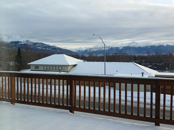 Great Innescraig townhome in desirable South Anchorage location near Old Seward Highway and DeArmoun Road. Fabulous southern exposure with lots of sunlight to brighten your day. Spectacular view of Cook Inlet, Turnagain Arm, and Chugach Mountains from all rooms and the expansive Trex deck. Large living, dining, and half bath on upper level. Two bedrooms and two full baths plus laundry area on lower level. Large living/dining area has vaulted ceiling and gas-fired stone fireplace. Double garage with storage shelves. This is a special, one-of-a-kind home close to shopping and great schools! Owner pays association dues which include outside maintenance, snow removal, water, sewer, trash pickup, and basic cable. Tenant pays utilities, including gas, electric, and phone.