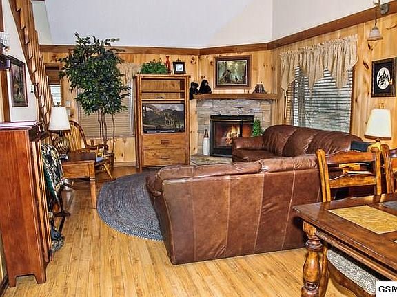 Great deal on a very charming property. Super location, easy access, recent updates, overlooks babbling creek. Nicely furnished and decorated the cabin has a good size great room with fireplace. Master on the main, large loft with full bath, rec room with pool table. Two screened porches, one with hot tub the larger for grilling, dining, or simply relaxing and listening to the flowing creek.