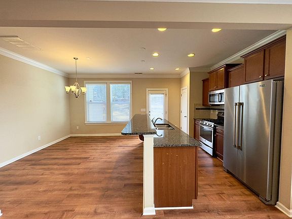 Beautiful END UNIT Townhome in Morrisville! It features 3BR/ 2.5 bath, Granite countertops, stainless steel appliances, gas range, hardwood flooring on main floor, gas stove. Large primary with 2 secondary bedrooms and laundry room on second floor. Ceiling fans in all bedrooms. Sip your morning coffee in the patio overlooking woods with perfect privacy. Located in luxurious Providence Place Neighborhood with Pool, play area and walking trails. Minutes to I-40, NC 540, RDU, RTP, dining & shopping!