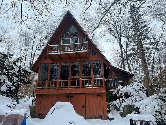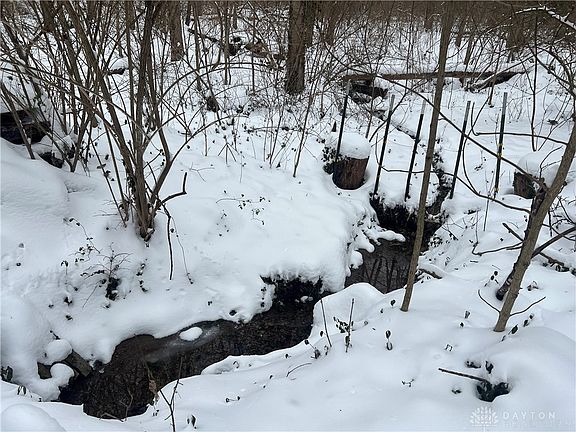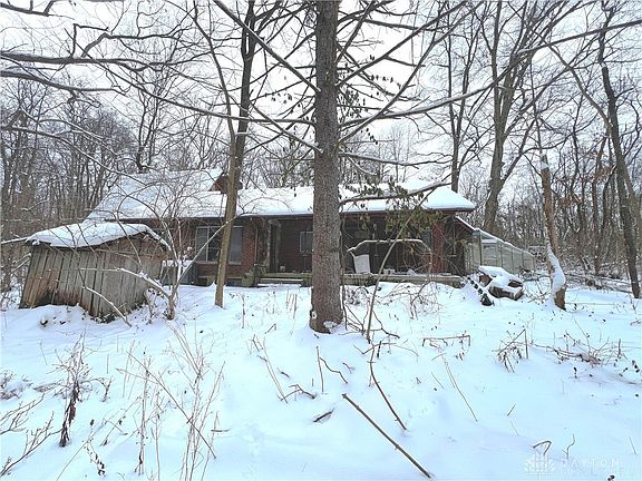 If you are looking for an extremely secluded homestead location nestled in the middle of 8+ densely woods acres, with streams through it, this is definitely a contender. As you enter the property down the winding drive, at the clearing you can't help but be amazed by the bordering babbling stream and 2056SF full glass front towering Chalet. (The original house built in 1930/ the Chalet addition constructed in the 1970s.) Curved stairways and paver walkways lead to the main entry on the side. Chalet addition is graced with a loft catwalk inclusive of front observatory settee with exterior balcony and majestic tavern inspired bar. Family room offers a cozy, stone fireplace. Owners suite has walk through closet area and private bath. The house has not been lived in for approximately 5 years, so knowledge of condition of all mechanicals is unknown. Yes, the property definitely needs work, lovin' and cleaned out, but worth the investment for the right buyer who is wanting that One of A Kind property and able to envision it transformation to make this their own ''Piece of Paradise''. Convenient to Vandalia, Dayton and Englewood and Dayton International Airport. Selling As Is/Where Is. Nothing warranted or guaranteed.